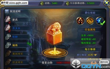 功勋值升满之后,点击升级按钮便可以提升爵位,提升爵位之后不仅仅会为玩家们带来属性上的加成。更可以领取每日的俸禄,获得专属技能,还有炫酷的爵位称号等着大家领取哦。