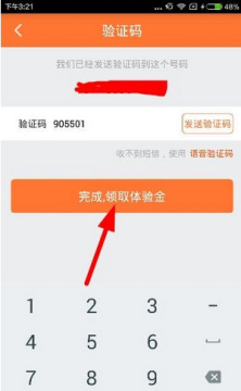 2、按照步骤用手机号和验证码注册成功后,点击“完成,领取体验金”就可以领取成功了;