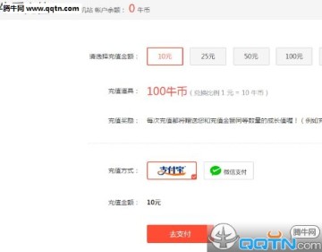 兑换比例为:1元=10牛币,也就是说一个牛币就是0.1元;并且每次充值可选择的最小值为10元,也就是说等于100牛币;