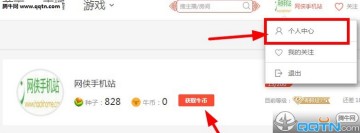 登录到全民TV网页端,进入到个人中心,点击获取牛币,如下图所示;