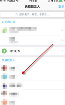 4、点击添加之后会进入到钉钉好友栏和常用联系人,你可以找到你想要添加为特别关注的好友即可。