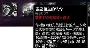 雷霆领主:对同一个敌人进行三次攻击或者伤害型技能,就会召唤闪电打击造成AOE伤害。