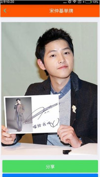 5、你要的宋仲基举牌照就生成了,下边还有一键分享和保存图片。