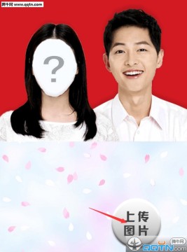 1、首先,进入小编给出的宋仲基结婚证照片生成器链接,我们就可以看到宋仲基和妹子的结婚照图片,选择上传图片;