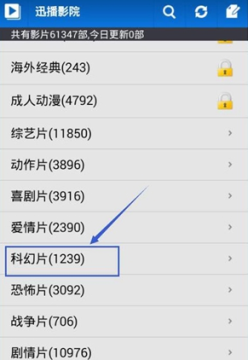 1、打开迅播影院APP,选择你想观看的视频类型,如小编选择的科幻片;