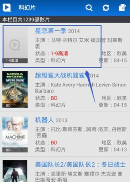 2、 在科幻片的类型中找到你想观看的那部影片,如星恋第一季;