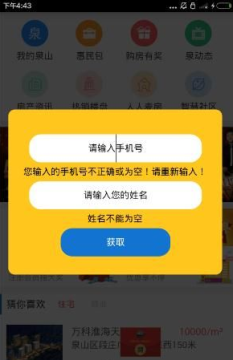 1、小编下载安装泉频道app后,输入手机号和姓名点击获取按钮,
