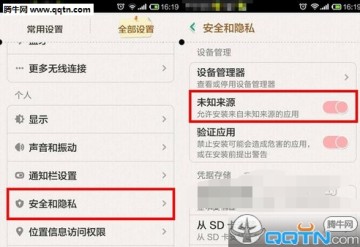 请至『设置』→『安全和隐私』→『未知来源』(务必请打勾)