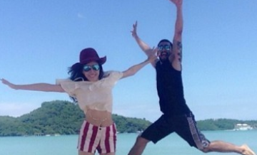 小笨蛋,我们要穿着泳装,手拉手的走在沙滩上。