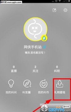 进入纠纠直播中,你需要点击【我的】——【礼物提现】,如上图所示;