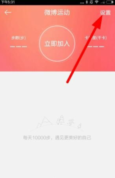 1、打开软件,在微博运动界面,首页点击右上角的设置按钮,