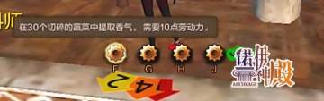 点击“F”键是消耗30个切碎的蔬菜提炼香气。切碎的蔬菜通过使用青铜雕刀加工胡萝卜土豆等蔬菜获得。