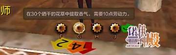 点击“G”键是消耗30个晒干的花草提炼香气。晒干的花草通过使用青铜雕刀加工水仙花四叶草等花草获得。