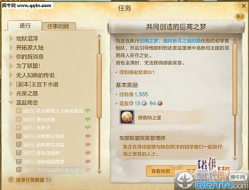 与东部联盟贸易管理师对话,会接到任务——共同创造的巨商之梦。在这个任务中,要求玩家与正在执行“巨商之梦,通向新月之城的路”任务得新玩家组队,并且保护他到达索兹里德半岛新月王国的贸易商人处。这个任务只能说不可强求啦,毕竟不是每天都会遇到要去对面完成任务还需要陪伴的萌新们的。