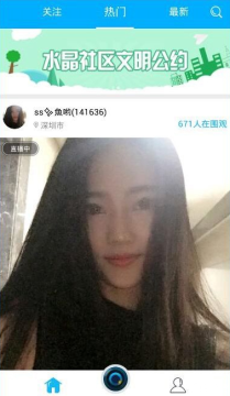 1、打开水晶直播主页,即可观看到众多热门的直播,同时还可以了解你关注主播的最新直播信息,并且在最新界面有最新直播的信息哟。