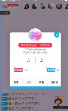 3、在直播页面中即可查看粉丝们送给你的水晶及礼物哟,而且还可以和粉丝们进行互动,不再想直播时点击右下方的叉叉按钮即可结束直播;