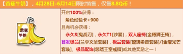QQ飞车香蕉牛奶活动时间:4月28日-6月14日
