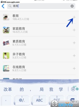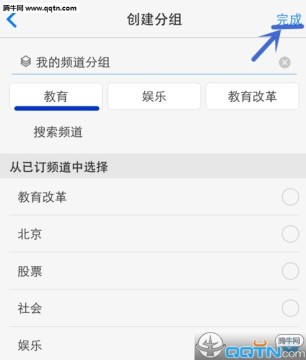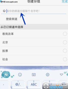 搜索添加新频道。输入想要搜索的词,点击键盘右下角“搜索”,按“+”添加,新的频道就出现在了新分组里,点击“完成”。