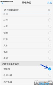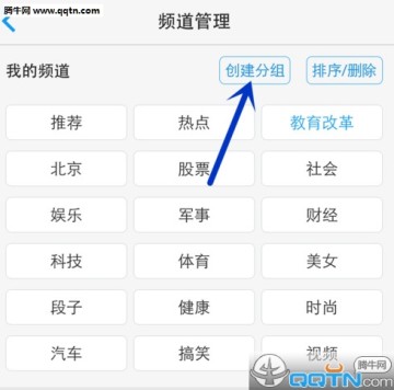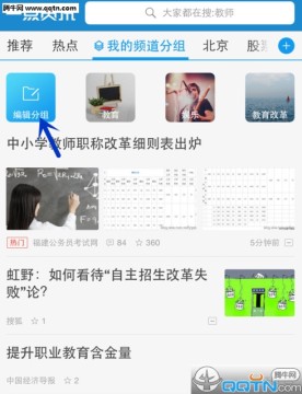 添加推荐频道。在资讯页面出现了新建的频道分组,点击“编辑分组”。下拉,就可以从“推荐频道”中添加频道到分组中了