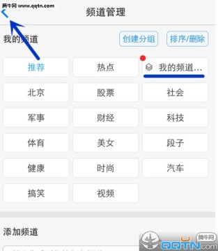 在频道管理页面“我的频道”中,可以看到刚新建的分组有。点击左上角的返回按钮。