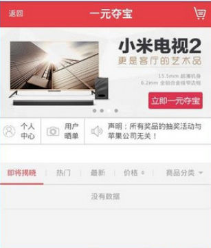 4、一元夺宝:商品分配对应数量的号码,而每个号码价值1个元;当一件商品所有号码售出后,根据预先制定的规则计算出一个幸运号码,持有该号码的用户,直接获得该商品。