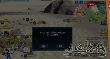 首先,组满十人团队,检查好大家都在相同的分线里,还有十分钟左右的时候司机们就可以跟NPC对话,一直打开到“参与天下镖,需扣除100点功绩值,是否继续”的框体。其次,要时刻注意时间,开启天下镖所参照的时间是游戏内的八点。这里小编提醒大家不要拿着自己的手机等八点哦,要看着天刀世界里的时间。看天刀时间的方法是用鼠标指着右上角地图边上的天气按钮哦。