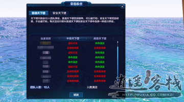 (2)在海河洲里团队框体边会出现资格检查选项,大家可以时常进行刷新来查看是否有人不满足开启天下镖的条件。