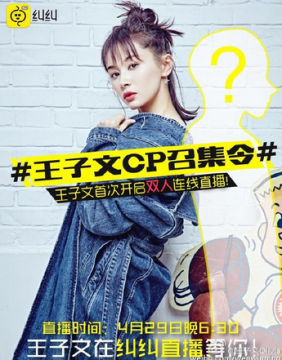 王子文将于4月29日18点半和粉丝在纠纠直播平台开启双人连线直播,粉丝是随机抽取的。王子文原文微博内容如下: