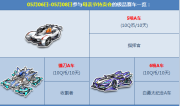 以上就是小编为大家带来的QQ飞车母亲节极品特卖会活动,感兴趣的小伙伴们千万不要错过活动时间了!