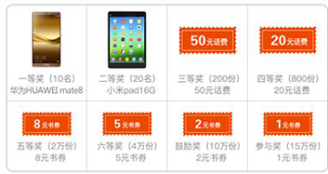 b、每月签到次数满10次,即可获得一次抽奖机会(每个月抽奖仅限一次,进入下月后自动清零)2016年5月奖品如下:其中包括华为手机10名、小米pad16G20名、50元话费200份等等。