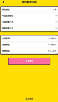 想要提现的用户首先需要进行直播获得香蕉皮,然后点击界面上方的个人头像,进入到个人中心,然后点击进入获得多少香蕉皮的那个按钮,就是红色按钮,点击以后进入到提现界面。