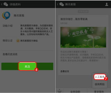 1、微信-》“+”-》搜索并关注公众号“腾讯客服”;