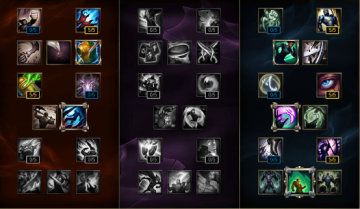 红色:9*攻击力,黄色:9*护甲,蓝色:5*固定减CD+3*成长减CD,大精华:1*攻击力+2*攻速。身为一个非常依靠大招吃饭的英雄,CD就变的非常重要,精华带2个攻速可以大幅度增加打野速度。
