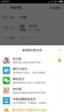 2、然后选择充值金额和付款方式,点击充值就可以充值了,如下图:
