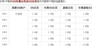 1、QQ等级升级加速。开通QQ会员后,QQ等级升级将加速,不同等级的会员加速的倍数不同,详细情况可以见下图。