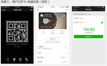 2.调起微信支付:商家可配置在卡内调起微信支付,目前已支持调起网页支付,在即将发布的新版本里,将支持调起刷卡支付,实现消费闭环。