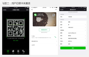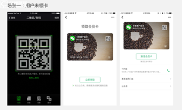 新版会员卡将多种功能集合在一个二维码上:未领卡用户扫码后,领取页面将默认勾选关注公众号选项,用户点击立即领取后,将在领卡同时关注商家公众号;领卡未激活用户扫码后引导激活;已领卡并激活的会员用户扫码可直达卡面,进行支付、查看积分等商家设置的操作。