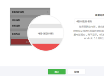 2、在公众号设置界面,找到“客服电话”,点击“设置”,输入号码后,点击“确定”即可,这样客服电话就设置完成了。