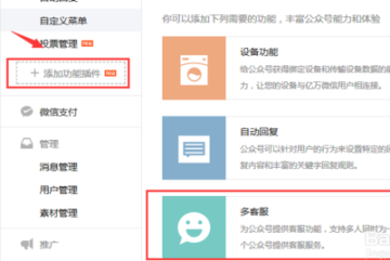 1、点击左侧菜单“添加功能插件”-“多客服”。