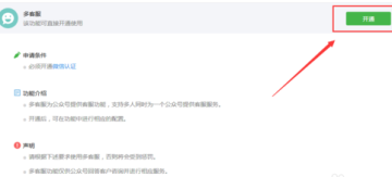 2、进入“多客服”界面,点击“开通”,开通成功后点击确定返回“查看功能”。
