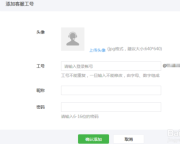 4、点击“添加客服工号”进入添加工号操作界面,按照要求把资料填写完整即可。