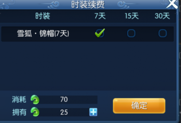 每件时装均有一定的有效期,当有效期过后,可以对原有时装进行续费操作。
