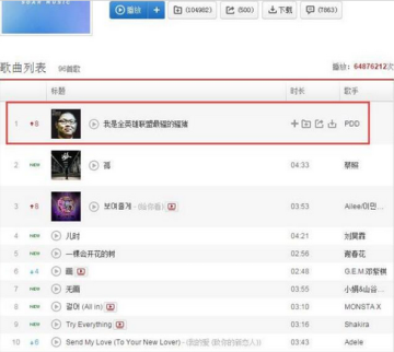 并且,仅仅过了一天,这首歌就直接从第九名飙升至第一名,还登上了新歌榜的第八名,直接成为了五月最佳金曲。我相信这个时候目瞪口呆的不仅仅是PDD,就连制作人起小点也没有想到这首歌有这么大的魔力吧。