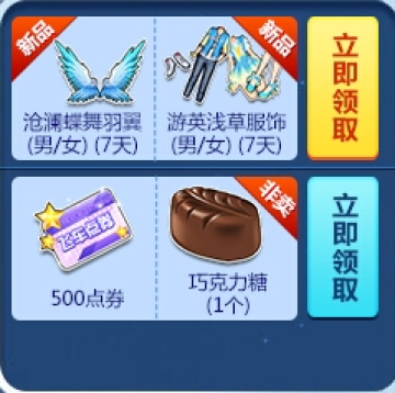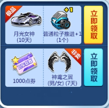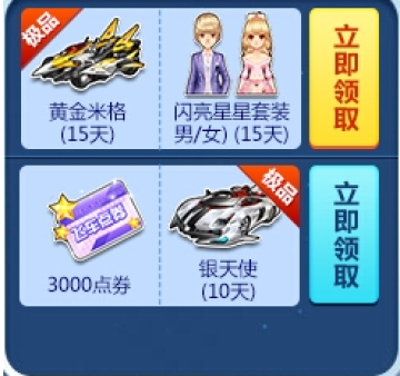 1、玩家根据测试得知自己所属的幸运星领取对应的礼包,登陆游戏后更可额外领取更多的奖励;