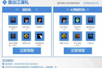 2.2016年5月1日前没有登录用户可领取回归礼包,仅限领取一次