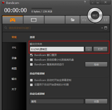 首先要设置2个部分,常规里的输出文件夹(这里你可以自定义,就是视频录制完成所在的位置)。