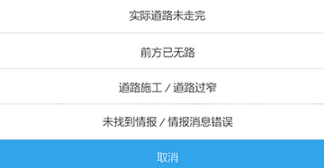 2、页面会显示“实际道路未走完”、“前方已没路”、“施工中”、“路过窄” 、“未找到任务”、“任务消息错误”等,根据实际情况选择对应的选项。