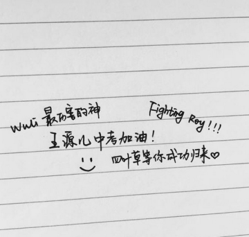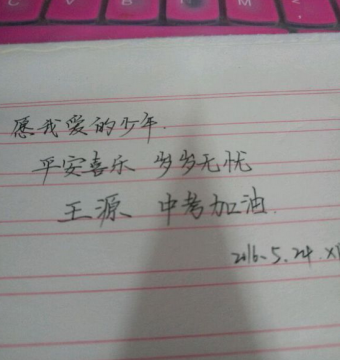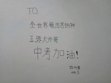 tfboys最后一名即将摆脱初中生涯的王源要面临高考了,作为小汤圆们,是不是应该给王源送上祝福呢?以下是小编在贴吧里收集整理出来的祝福王源高考加油的手写文字突破,想对临近中考的王源说一声加油,考前放松,汤圆们等胜利归来。三周年也将临近,滚滚也希望源哥不要给自己太大压力,舞台上的源哥永远是最最优秀的!