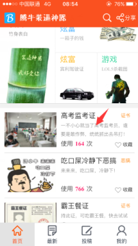1、首先,我们需要下载腾牛装逼神器,成功安装后,打开软件,在首页即可看到高考监考证,点击进入;