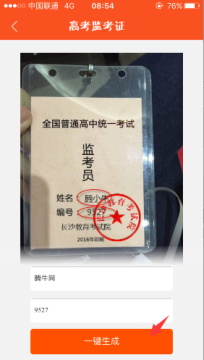 2、在高考监考证中,输入你的姓名和编号,点击一键生成;